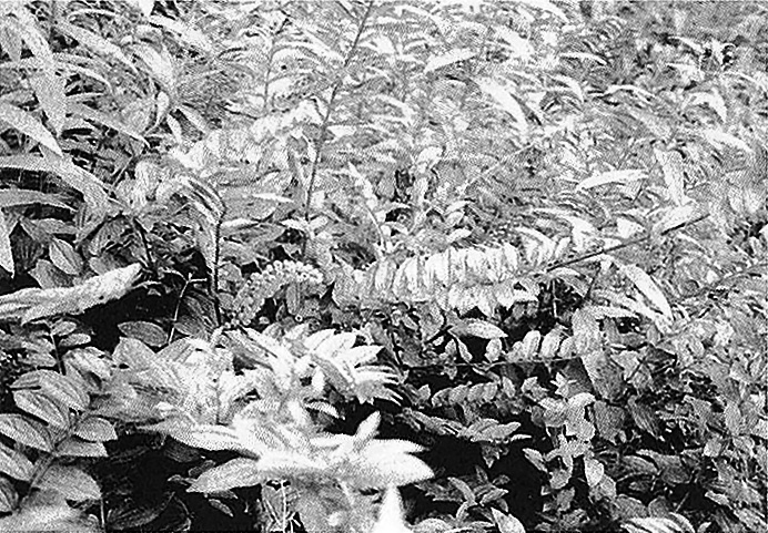 提供されたカラー写真(Fig.1)は、主軸の先端が花序になっていて、側枝には広楕円形の葉が対生している。葉脈のパタン、葉の縁の細かな鋸歯、それに5枚の花弁が多肉化した偽果が穂状に着いている点など、まぎれもなくCoriaria terminalisである。しかしこの写真では、偽果がやや橙色がかった鮮やかな赤色をしていることが気にかかった。世界には約16種のドクウツギ属植物があるが(大場 1993)、そのほとんどは黒紫色に熟する。C. terminalisは中国の四川省からネパール中部まで分布する。Hemsley(1892)の原記載では、果実については “… figured and described from an Indian specimen” と付記されており、果実の色は不明である。Rehder&Wilson(1916)は、中国のものは果実が “black” であると記している。陳(1937)には “果実紅色変為黒色” とあり、この “紅色” は未熟果の色を示している。郑ら(1980)、陳(1988)には “紫紅色或黒色” とある。これらのことから中国のものの果実は紫紅色または黒色であることがわかる。これに対してSprague(1913)には、橙黄色の立派な果実が描かれ、“Fr. embedded in the orange yellow, freshy, enlarged triangular convex petals. ” と記されている。この図はイギリスでの栽培品から描かれたものである。Rehder and Wilson(1916)は、本種の分布域の西部にあたるシッキムのものの果実が “yellow” であることから、var. xanthocarpaを区別し、その際Sprague(1913)を引用している。Hara(1966)は東ネパールのZongi - Walunchung Golaの標本について “The fruits are rather dry and yellowish brown” とし、var. xanthocarpaに当てられるとしている。この標本は1963年11月10・11日に採集されたもので、すでに霜に何度か曝されており、生時の色を保ってはいなかったが、おし葉からは比較的淡色な印象を得たものと思われる。Grierson and Long(1991)によると、ブータンのものは “orange or?black” と書いてあり、彼らは確実な色を知らないらしい。著者らはまだ熟果期のものを見たことがなかった。