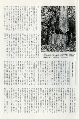 文教政策といっても、むづかしく考える必要はない。森や林や湿原の素晴しい生態を正しく知らせること、そのためにだれが、どのような方法でどうするのか、という問題につきるのである。そして、天然林の本当の姿をともかくも出来るだけ多くの人々に体験してもらうことなのである。こんこんと湧き出る泉と流れ、深く柔かな落葉の堆積、季節の中に咲き競う花、様々な形をした小さな植物たちの姿、群生、風や鳥たちの音、土の香り、光や糸や輝きの乱舞、小動物の気配、小枝や葉の美事な形、そして、なんといってもこの森の主役は、何百年をも生きてきた見上るような大きな樹木たちだ。