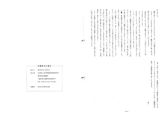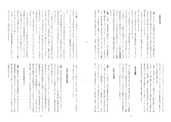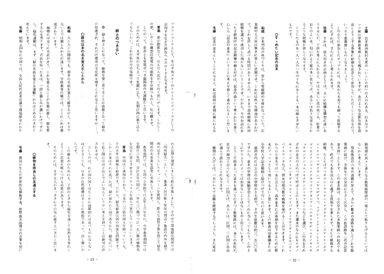しかし、今は科学と資本主義経済の発達にともなって、このような知識が実用的には必要がないような時代に変って、大人たちは、その大事な子供たちに、尊い贈物をすることを忘れかけています。情操豊かな子供に育てたいと願う親心は、昔も今も変りはないんだから、第一に家庭環境の一環として取り上げなければなりません。