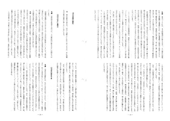 此の度、緑と水の森林基金の創設が伝えられている昨今、緑を通じての文化都市づくりえの挑戦が望まれている。それには、現在と未来をつなぐ緑えの発想の転換が必要であり、その数々を座談を通じて何げなしに指摘されているように思われた。