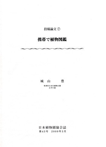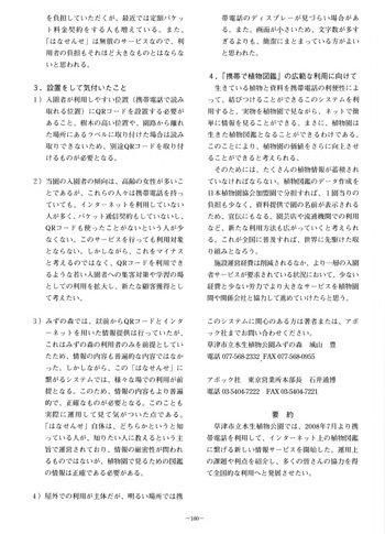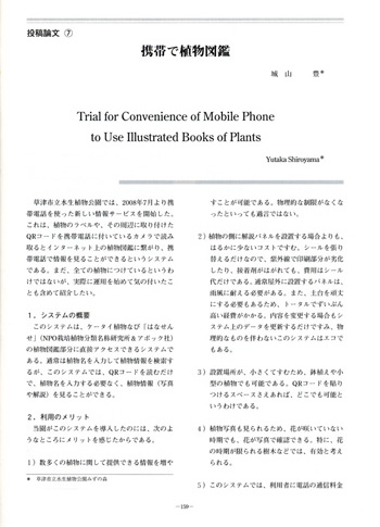 草津市立生成植物園では、2008年7月より携帯電話を利用して、インターネット上の植物図鑑に繋げる新しい情報サービスを開始した。運用上の課題や利点を紹介し、多くの皆さんの協力を得て全国的な利用へと発展させたい。