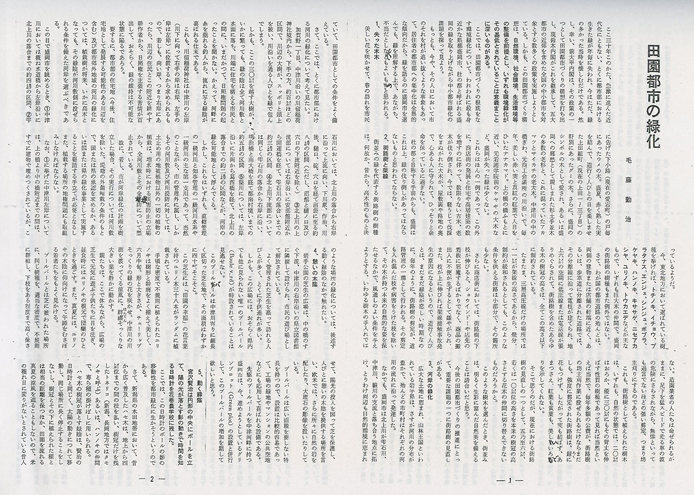 今、これらの実証に基づいて、それぞれの町が、新緑、開花、結実、紅葉などについて、それぞれの好みに応じて、『町内の木』を選定し、町内会が主体となって、各戸に一本なり二本なりの割合で苗木の植栽を進めるとき、市内には、折ふしの花が、いつもどこかの町を彩り、春秋を通じて絶えることがない特長的な緑の都に生まれ変わるだろう。われわれは、この考えを単なる盲想狂の夢だとして低く評価すべきではないと思う。