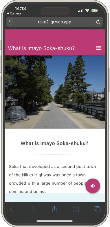 サインに標準でつくQRコードを読み取るだけで、瞬時に手元のスマホの表示言語で案内解説をしてくれる低コストオプションサービスです。都度言語を選ぶストレスもありません。